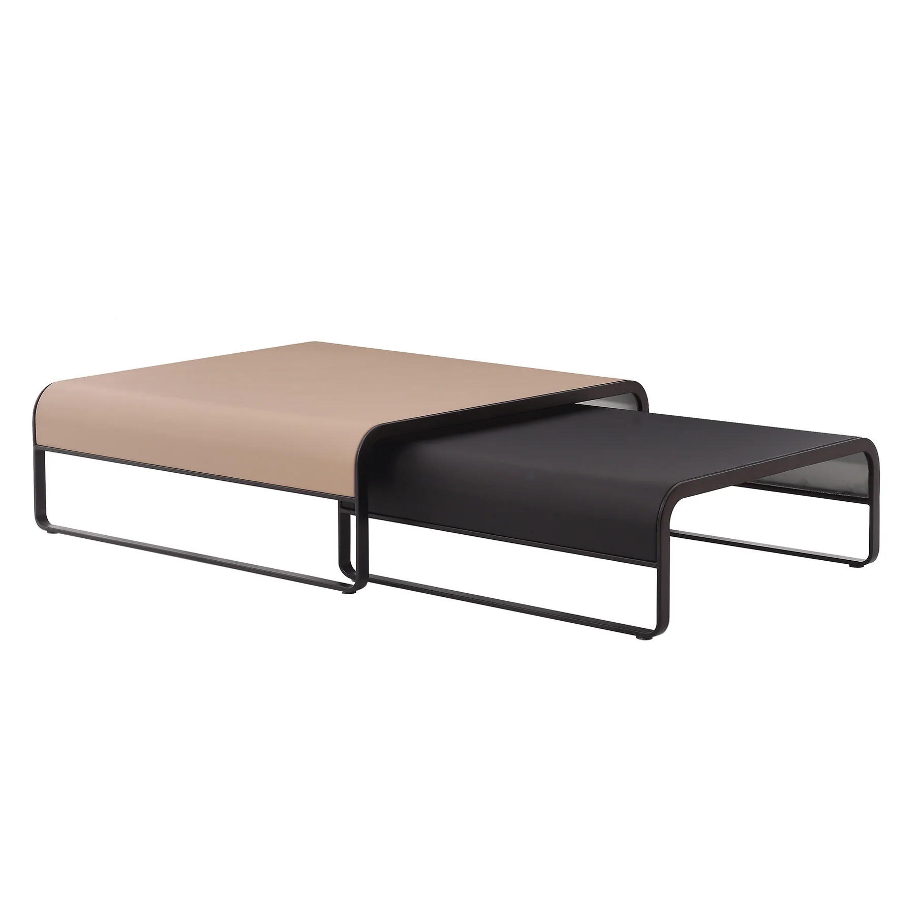 Upgrade your living room with our chic square table set in black & khaki. Crafted for affordable luxury, these tables feature vegan leather upholstery and sturdy carbon steel support, effortlessly blending style with practicality.