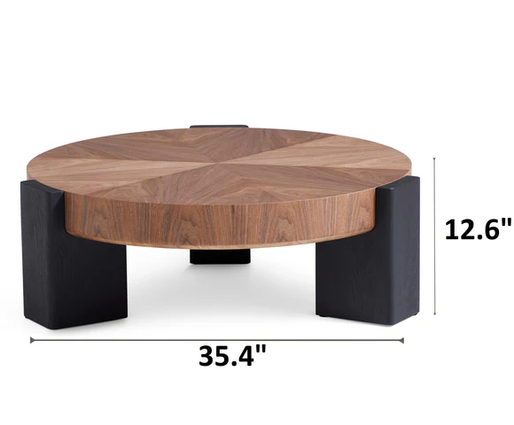 Featuring a beautiful gradient walnut veneer, this round wood coffee table brings warmth and sophistication to any space. The smooth, solid wood surface ensures durability, while the sturdy legs provide excellent stability. A perfect combination of elegance and functionality for modern living.