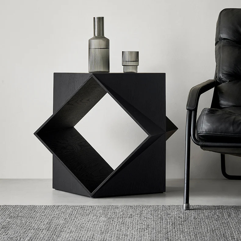 This side table blends artistic design with precise mathematical craftsmanship. Constructed from equilateral triangles and squares, it creates a stunning geometric display space.
