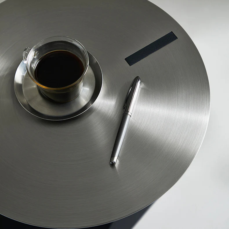 The brushed stainless steel tabletop features a simple and clear circular shape, exuding a strong modern feel. Its refined design not only enhances the aesthetics of your home but also serves as an essential piece of functional furniture, blending beauty and practicality to seamlessly fit into various living spaces.