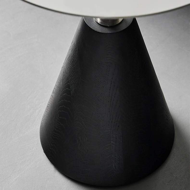 The base of this side table is designed with a unique tapered shape, featuring a smaller top and larger bottom for superior stability. Crafted with precision joinery and lacquer techniques, it offers a mysterious and captivating aesthetic. Every detail showcases exceptional craftsmanship and refined taste. With both practical functionality and visual appeal, it enhances your space with distinct charm and elegance.