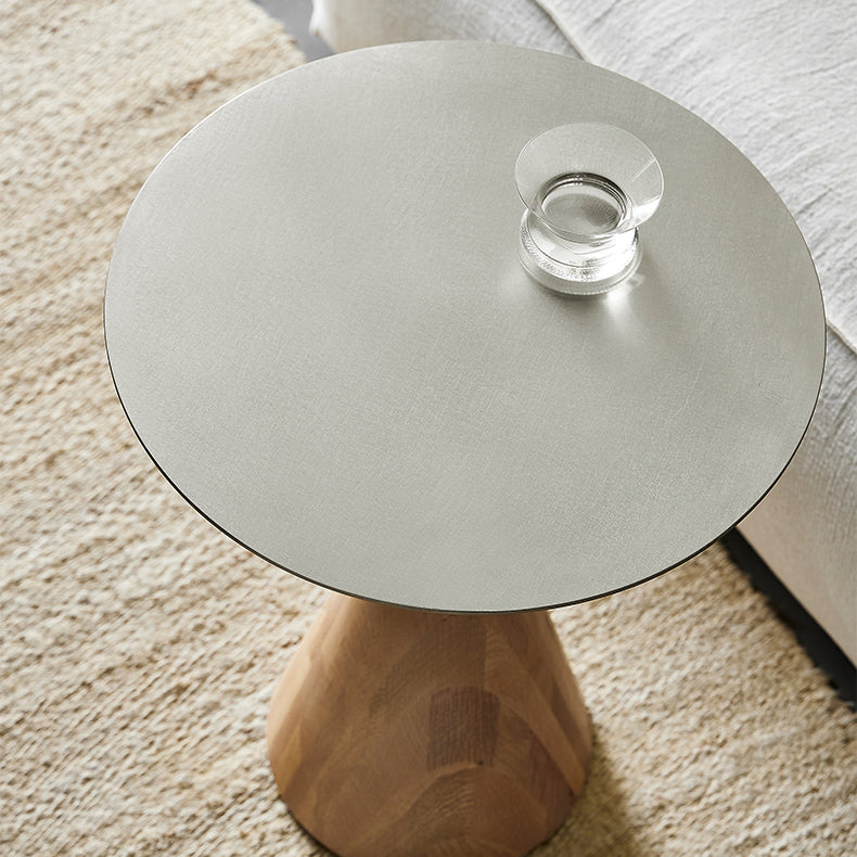 This nordic style creative side table embodies simplicity while exuding sophistication. The slim mirrored stainless steel top not only offers exceptional quality but is also easy to clean. The tapered white oak wooden base is sturdy and durable, bringing a natural, warm touch to the design. Its lightweight and convenient structure allows for easy mobility, making it suitable for various settings. Whether placed in the living room, bedroom, or balcony, this side table adds a perfect blend of elegance and practicality to your home.
